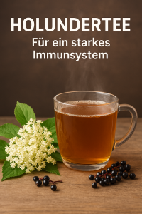 Holundertee ist besonders bei Erkältungen und Grippe hilfreich, da er schweißtreibend wirkt und das Immunsystem stärkt. Er lindert auch Entzündungen der Atemwege.